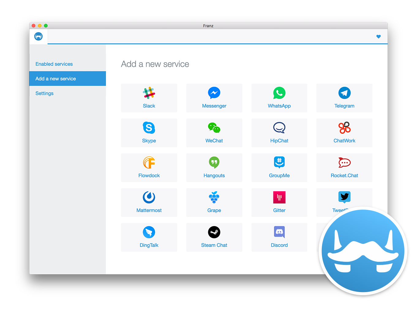 Franz is a social media aggregation app. If you’re like me you have 5 slack channels, WhatsApp, Facebook, LinkedIn, TweetDeck … Franz aggregates all these into a simple app. It can be a bit buggy, but it seems no one else has come up with anything that comes close to Franz yet.