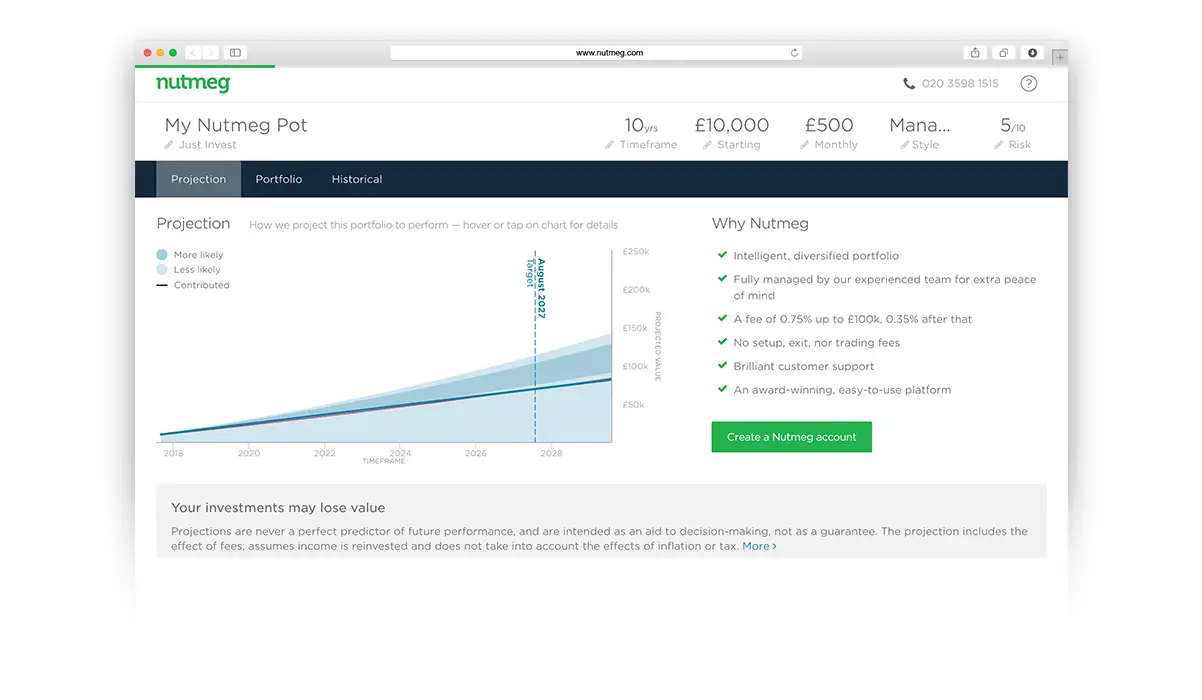 Nutmeg is a “robo-investing” platform. I started investing in Nutmeg in the past year or two as a bit of fun. I’m not recommending it as the go to investing solution. But it is cool. You set a risk tolerance and then contribute bits of money over time. Then you watch the investment chart go up and down. The fees are pretty big. So if you’re a serious investor I’d recommend you look at different options. But for first-time investors, it’s pretty cool. A good foray into the investment world.